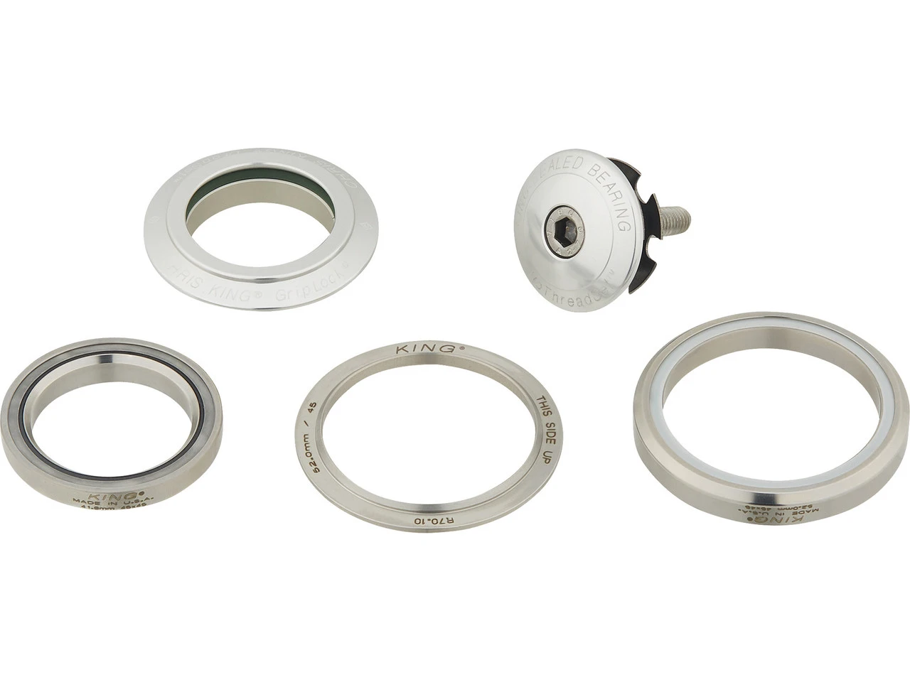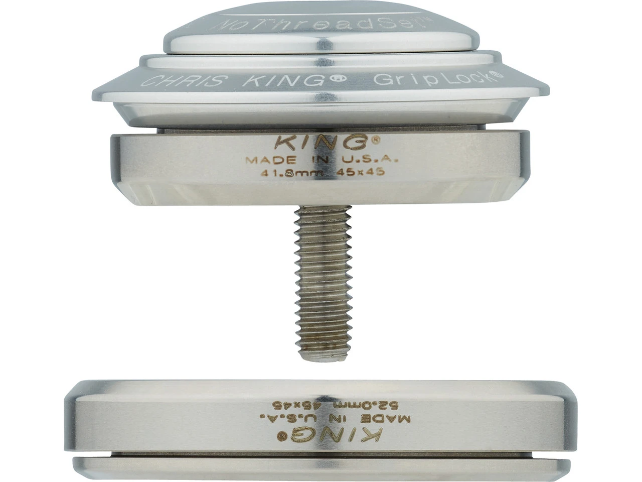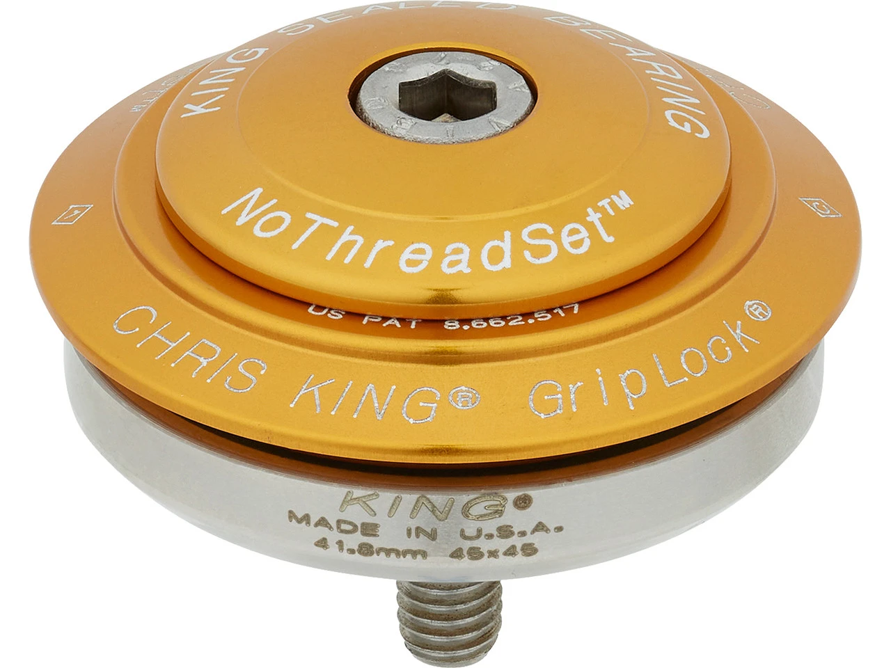 Verwendung:Für 1 1/8″ Steuerrohre oben und 1,5″ unten in Kombination mit 1 1/8″ – 1,5″ tapered Gabeln konzipiert.Spezifikationen:Einsatzbereich:Road, Gravel, Cyclocross, Cross Country, All Mountain, Enduro, DownhillBauart:integriert (IS)Außendurchmesser oben:42 mmInnendurchmesser oben:28,6 mmAußendurchmesser unten:52 mmInnendurchmesser unten:40 mmSteuerrohr:1 1/8″ – 1,5″Gabelschaft:1 1/8″ – 1,5″Technische Daten:Material:AluminiumLagerung:mehrfach gedichtete Industrielager aus EdelstahlDeckel:Aluminium Ahead-KappeFeatures:integrierter Ahead-Steuersatz mit nur 9 mm BauhöheCNC-gefrästes Aluminiummehrfach gedichtete Chris-King-Präzisionslagerentwickelt und hergestellt in Portland, Oregon (USA)Herstellernummern:black:CDB1gold:CDY1matte jet:CDB2matte mango:CDM2matte slate:CDH2matte turquoise:CDT2navy:CDN1red:CDR1silver:CDS1two tone-black-gold:CDBYLieferumfang:1 x Steuersatz Chris King DropSet 5 IS42/28,6 – IS52/40 GripLock1 x Ahead-Kralle Chris King1 x Ahead-Kappe Chris King