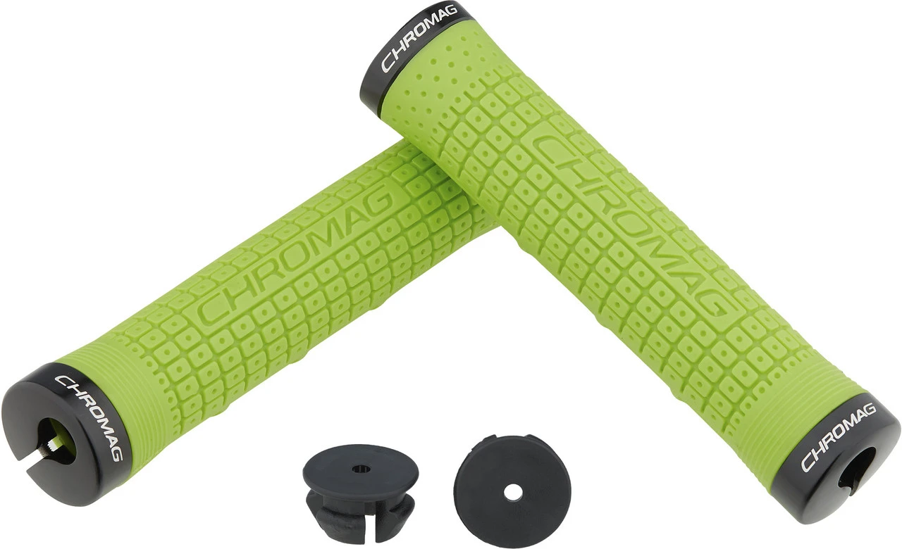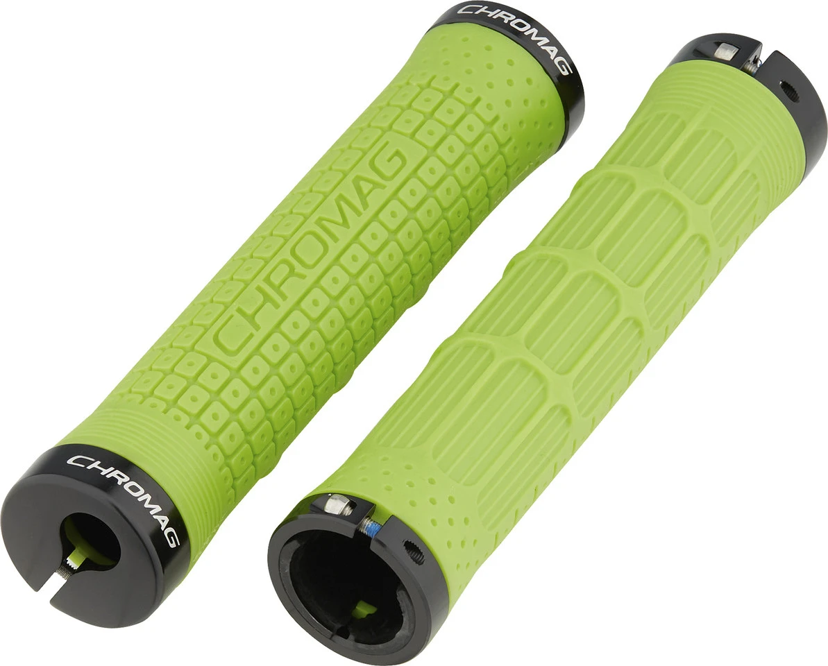 Farbgebung: grüngelb mit schwarzen LockringenHerstellernummer: 170-006-04Lieferumfang:1 Paar Lenkergriffe Chromag Clutchinkl. Lockringeinkl. Schrauben