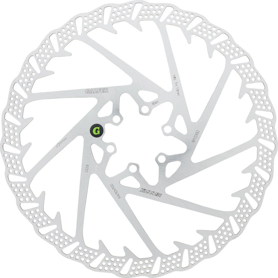 Die GALFER Fixed Disc Shark MTB 6-Loch-Bremsscheibe mit 2 mm Dicke ist extra temperaturstabil