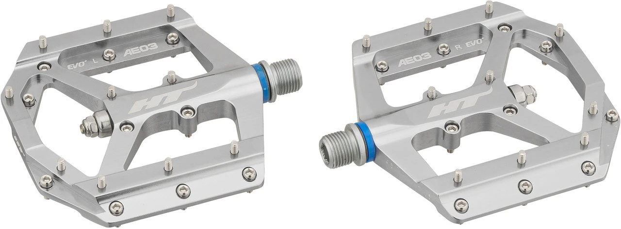 Spezifikationen:Einsatzbereich:DownhillAusführung:PlattformpedaleTechnische Daten:Material Pedalkörper:AluminiumMaterial Achse:Stahl (CrMo)Lagerung:EVO+ SystemBauhöhe:11 mmMaße [L x B]:102 x 96 mmAnzahl Pins:20Features:ultradünnKörper und Achse CNC-gefertigtIGUS Buchsenaustauschbare SAP-Pins (10 pro Seite)Herstellernummern:black:HT-AE-03-(001)red:HT-AE-03-(023)blue:HT-AE-03-(025)grey:HT-AE-03-(013)Lieferumfang:1 Paar Plattformpedale HT EVO AE03inkl. Pins