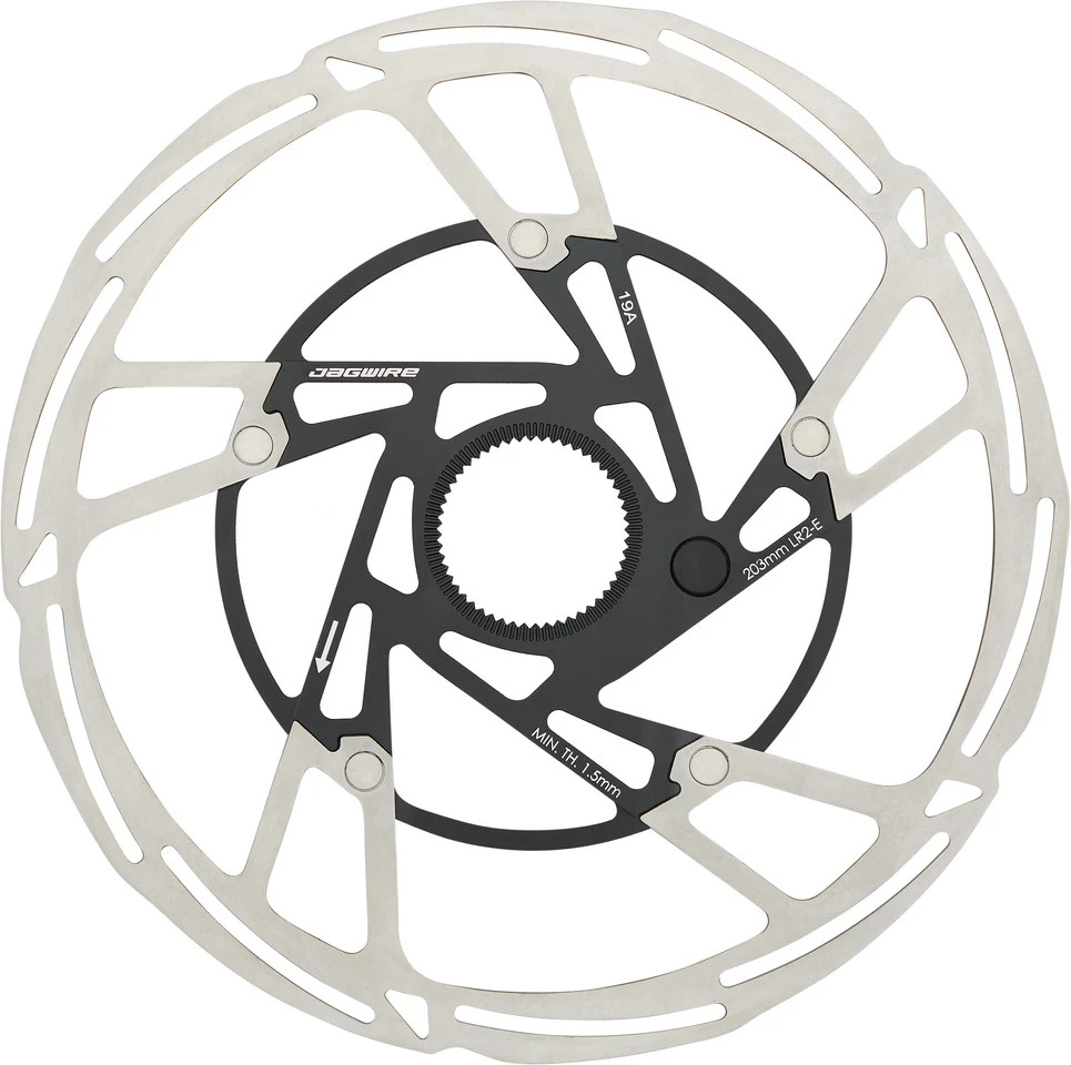 Die zweiteilige Jagwire Pro LR2-E Center-Lock-Bremsscheibe kommt mit einem integrierten Magneten, der in Kombination mit dem Geschwindigkeitssensor eines E-Bikes verwendet werden kann. Das Design, das eine konstant und leise bremsende Edelstahl-Reibfläche mit einem leichten Aluminium-Spider verbindet, weist eine hohe Verwindungssteifigkeit für mehr Haltbarkeit auf.