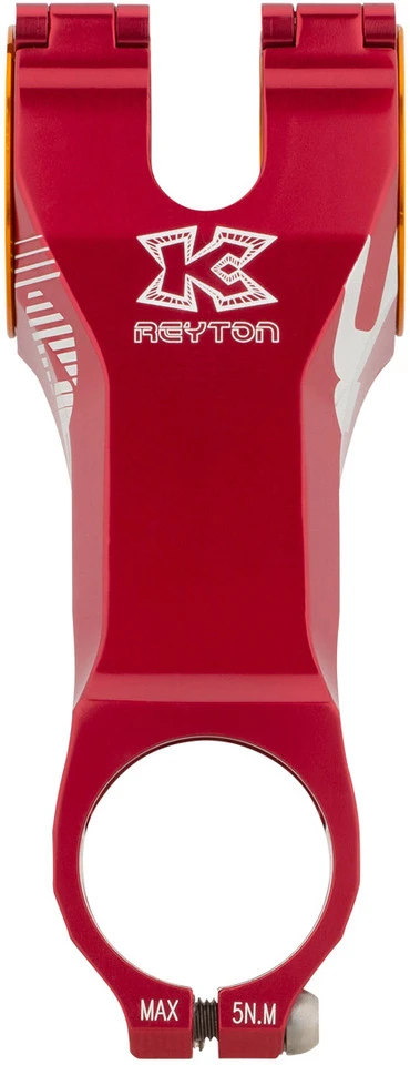 Der Reyton Vorbau zeichnet sich durch sein 7075 Aluminium mit Titanbolzen aus. Die Lenkerklemmung hat einen Durchmesser von 35 mm und kann mittels beiliegender Hülse auf 31,8 mm verkleinert werden.