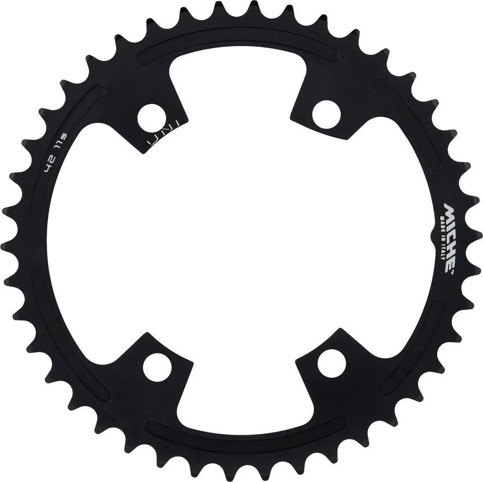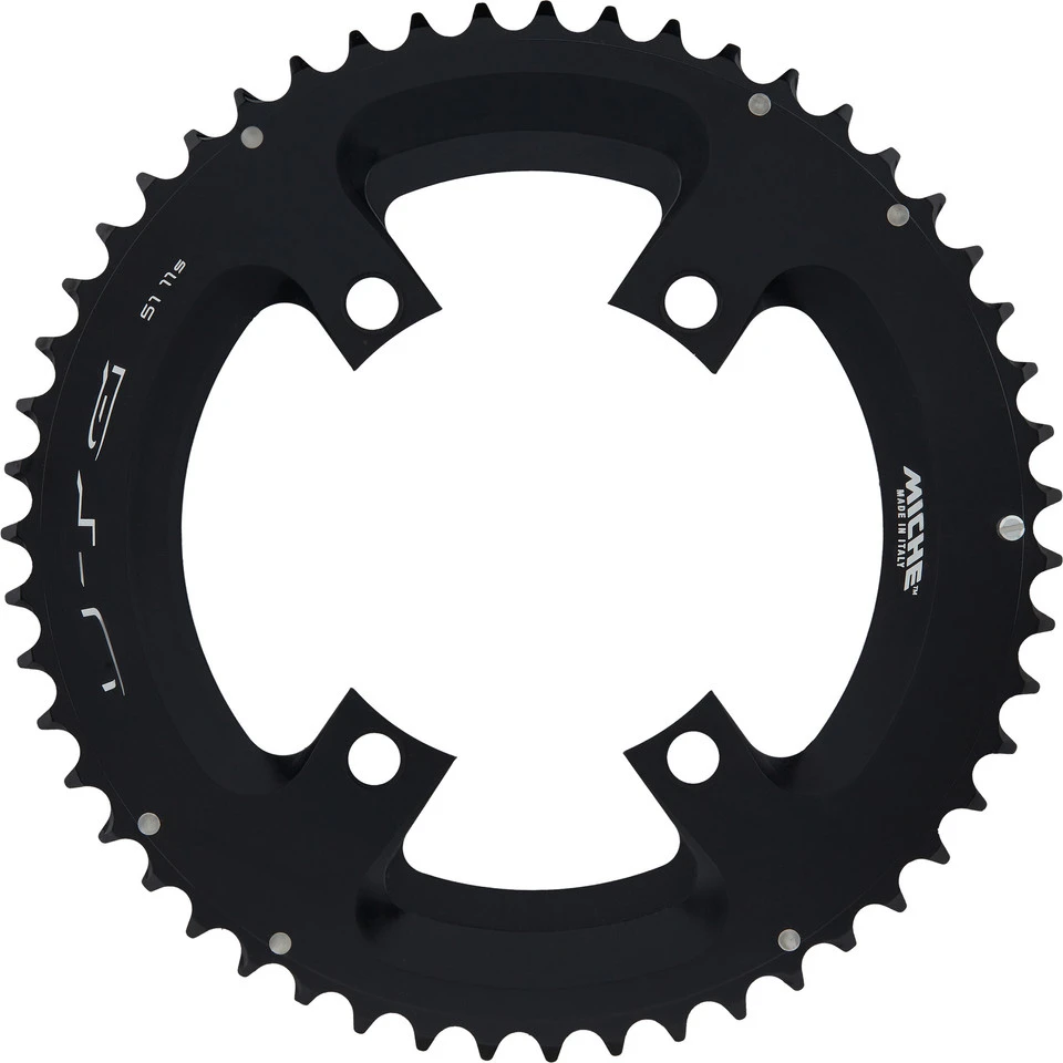 Das Miche Kettenblatt Super 11 UTG ist mit den Shimano Road 2×11-fach-Kurbeln Ultegra 6800 und 105 5800 kompatibel, die einen asymmetrischen Lochkreisdurchmesser von 110 mm aufweisen.