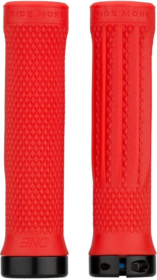 Die OneUp Components Lenkergriffe mit Einfachklemmung und niedrigem Profil wirken harten Armen (Armpump) und Taubheit der Hände entgegen. Ihre Diamant-Noppenstruktur, die Sägezahn-Fingerrampen und das supergriffige 20A Compound stehen für ultimative Traktion. Mehr Traktion bedeutet, dass Du Dich weniger am Lenker festklammern musst und Deine Arme nicht so schnell ermüden. Obwohl diese Lenkergriffe nur einen Klemmring haben, verfügen sie über das Profil bewährter zweifach geklemmter Griffe. Denn um taube Hände zu verhindern, hat OneUp die Außenklemmung durch zusätzlichen Gummi ersetzt, sodass die Handwurzeln besser gepolstert werden. Hol Dir die Vorzüge eines „ergonomischen“ Lenkergriffs ohne langweiligen City-Bike-Look!