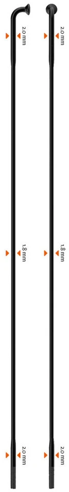 Sapim bietet konifizierte Speichen (2.0-1.8-2.0) mit einer Bogenlänge von 2,9 mm an, wie sie zum Einspeichen einer Rohloff Speedhub benötigt werden.
