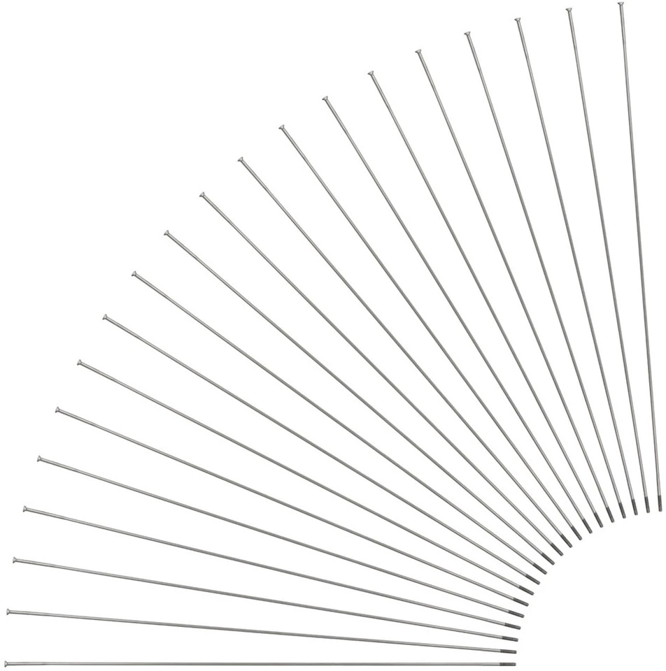 Technische Daten:Einsatzbereich:Road, Cross Country, All Mountain, Enduro, DownhillTyp:RundspeicheKopf:Straightpull (gerade)Durchmesser:2,0 – 1,8 – 2,0 mmGewinde:2,0 mm / FG 2,3Länge:250 mm – 306 mm (in 2-mm-Schritten)Material:EdelstahlFeatures:geringe Elastizitätgute StoßabsorptionFestigkeit im Mittelteil gegenüber nicht konifizierten Speichen erhöht (1300 N/mm²)Sapim Cold Forging Technologie (SCFT System)Lieferumfang:20 x Speiche Sapim Race Straightpull20 x Messing-Nippel Sapim Polyax 12 mm, silbern