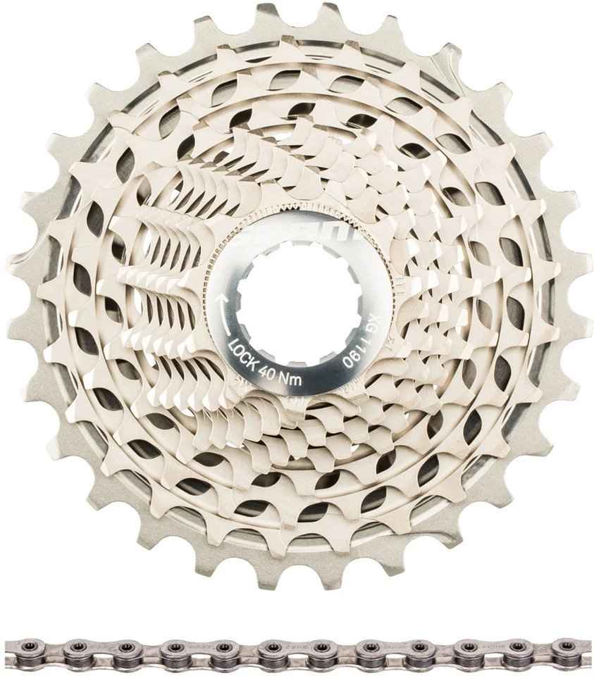 Technische Daten Kassette:Einsatzbereich:RennradMaterial Ritzel:StahlMaterial Verschlussring:AluminiumSchaltstufen:11Abstufungen:11-25 Z / 11-26 Z / 11-28 Z / 11-30 Z oder 11-32 Zempfohlene Kette:Red 22, PC-1170empfohlene Gruppe:RedTechnische Daten Kette:Serie:Red 22Material:StahlGröße:11/128″Schaltstufen:11-fachGlieder:114Außenlasche:Nickel-SilberInnenlasche:Nickel-SilberVerschlussglied:PowerLock™Nietentyp:Hohlstifte (Hollow Pins), verchromtempfohlene Gruppe:SRAM Force, SRAM RedTechnologien:PowerChain™, PowerLock™, PowerLube™Technologien:PowerChain™: