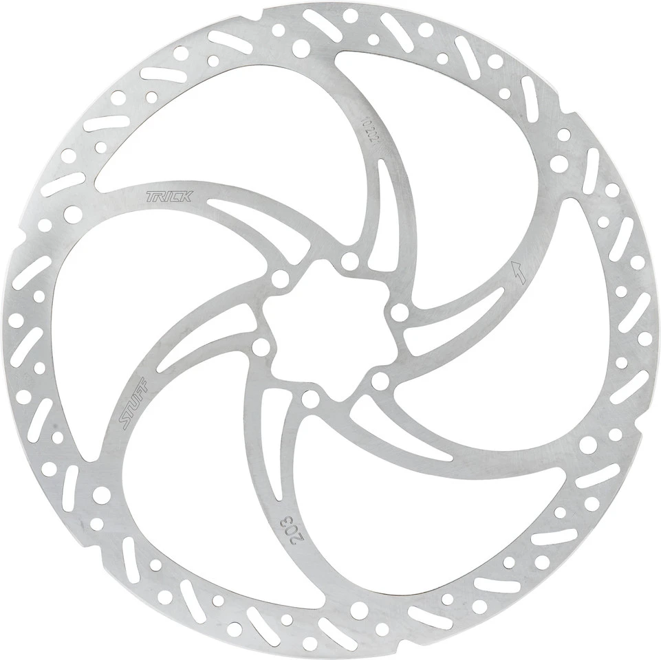 Technische Daten:Montage:6-LochDurchmesser:203 mmBauart:1-teiligMaterial Disc:EdelstahlFeatures:mit Dächle-Fase (dachförmige Abschrägung an der Kante) zur einfachen Montageeher massiver Reibring absorbiert viel Bremswärme, um nicht vorzeitig zu überhitzenLochanordnung für Belagsreinigung über die gesamte Breite und zuverlässige Bremsleistungschlanke Stege zur Gewichtsersparnissehr hohe Zugfestigkeit dank hochfestem, vakuumgehärtetem Edelstahlfür lange Abfahrten und Dauerbremsungen geeignet15,5 mm Reibringbreite2,05 mm Dicke für Stabilität, Langlebigkeit, Fadingresistenzauf eine Planheit von +/- 0,01 mm geschliffenHerstellernummern:160 mm:BRDSH16IN0000S180 mm:BKDSH18IN0000S203 mm:BKDSH20IN0000SLieferumfang:1 x Bremsscheibe Trickstuff Dächle-Disc HD
